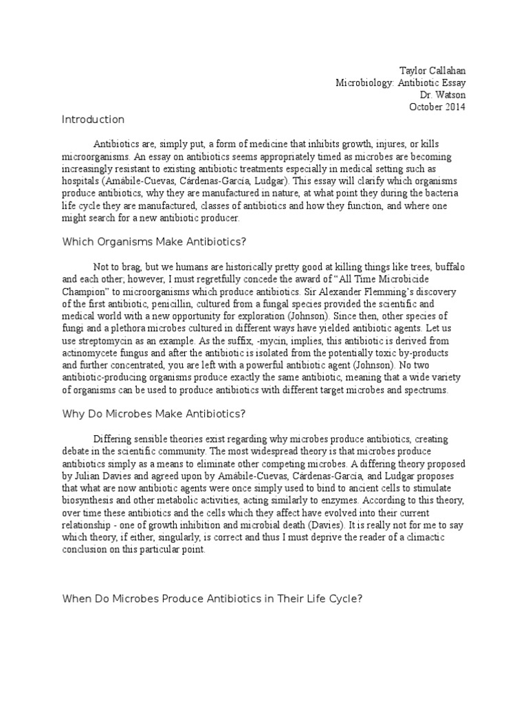 They may tell you your daily requirements for calories, vitamins, calcium, iron etc. but they do not tell you that your food could be the source of your illness or the reason why certain antibiotics will not have an effect on you! Antibiotic Resistance in Bacteria. Accessed May 19, Antibiotic Resistance in Bacteria Categories: Bacteria Health Care Tuberculosis, antibiotic resistance essay.